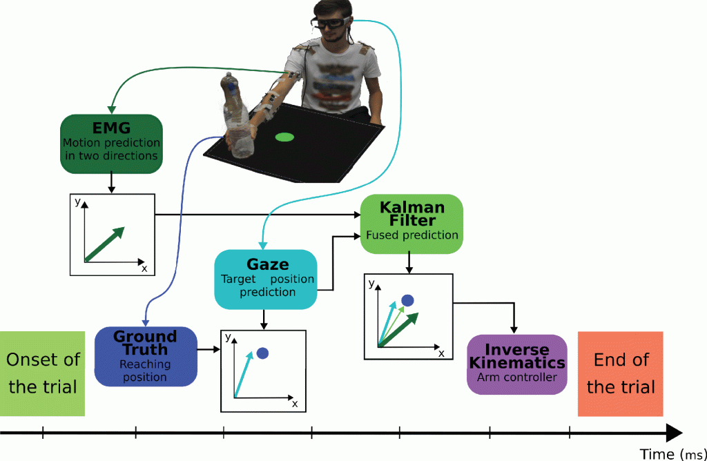 We propose a novel controller for powered prosthetic arms, in which EMG and gaze data are used to predict the end-point for a full arm prosthesis, which could then be used to drive the forward motion of individual joints.